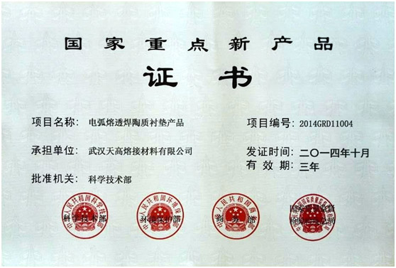 天高熔接电弧熔透焊陶质焊接衬垫产品入选国家重点新产品计划